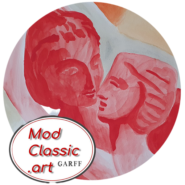 A couple shaped by Ancient Classical Greek Sculpuring Art. Creation of the Contemporary Art Master Painter Enrico Garff. Classical and Modern Art merge in the ModClassic Art Style. The Gripenberg Art Collection Museum in Helsinki owns this Masterpiece artwork painting.