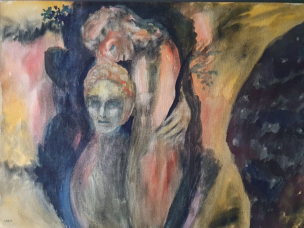 Spirits of the Trees in Ochre, pale red, and grey colors. Ancient Greek Classical Sculptures. A creation of the Contemporary Art Master Painter... more